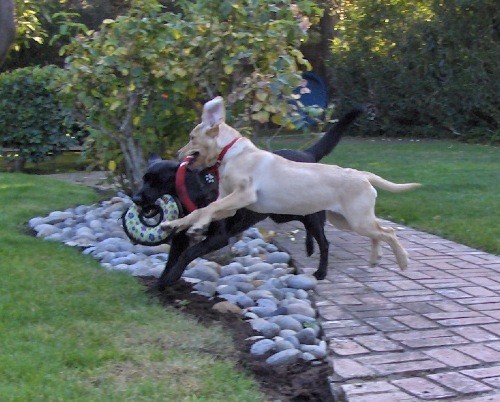 An American-style field Lab through and through, Torri absolutely loved swimming and retrieving. Patti said Torri took to the water without hesitation. Even during her last trip to Jackson, she eagerly walked in the water to swim. Though not obsessed with dock diving like her sister Hannah, Torri successfully racked up many ribbons in the under 10’ category and achieved a personal best with a 10’1” jump. As one Splash Dogs announcer said, Torri may not be jumping as far as Hannah, but her happy tail shows she’s having just as much fun. Torri loved fetching on land as well and was even doing a few retrieves up until her last week. We found that rolled rings worked best with Torri who could snag them without having to bend down or jump up. She got very clever with picking up rings that had fallen over by stepping on one side to elevate the other side to her mouth! What a clever girl ;) Her favorite toys were big fat fluffy ones, which were even better if they squeaked. She would retrieve or carry one around for a while and then go to the toy box to pull another one out, and repeat until her toys were scattered everywhere. She had a very curious nose and was very interested in checking “p-mail” on walks. She especially enjoyed exploring the smells on our Jackson ranch and would often disappear when we arrived so she could go check if there was anything left of the deer bones from her previous visits.