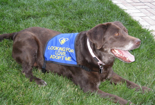 8/1/09-8/22/09: Lady is a very sweet and lovable spayed female chocolate Labrador who is about 6-7 years old. Don't let the early grey hair fool you -- she has plenty of youthful energy and attitude. She is a classic-looking English/British/show style of Lab who is a well-mannered and purebred little lady. She has typical Lab personality and looks with an otter tail and dewclaws removed. Lady is shorter and more compact than many Labs making her a nice sized pet who should reach an ideal weight of ~60 lbs with continued diet and exercise. She is 66 lbs currently and has lost 4 lbs in 3 weeks, so shouldn't have any problems getting to a healthier weight.